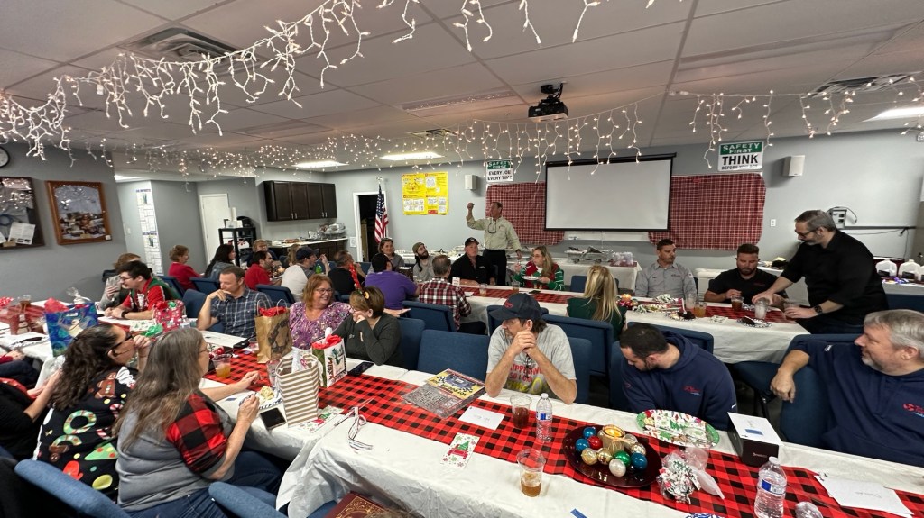 Below are a few of the pictures we captured from the All-Company Christmas Party at the Swanson’s home, as well as the Field and Office parties back in the Training Room. A lot of fun and happy people!