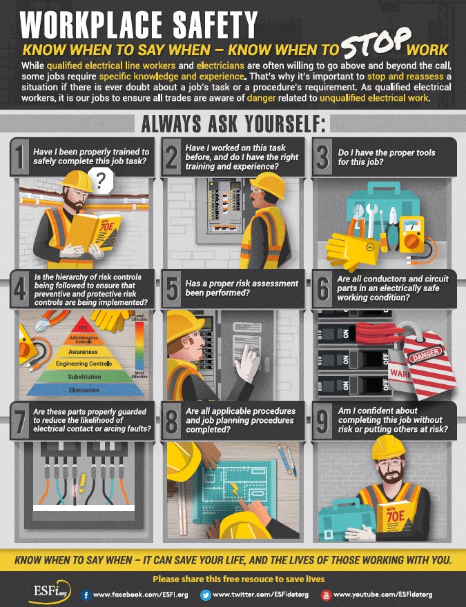 Everyone on the job site is at risk. Electrocution is the third leading cause of worker-related death for construction workers. Electrical currents can cause shocks, fires, explosions, burns, and falls which can be fatal or cause serious injury. Everyone is responsible for everyone’s safety, so if you see potential danger, speak up, and demonstrate care for yourself and others.
