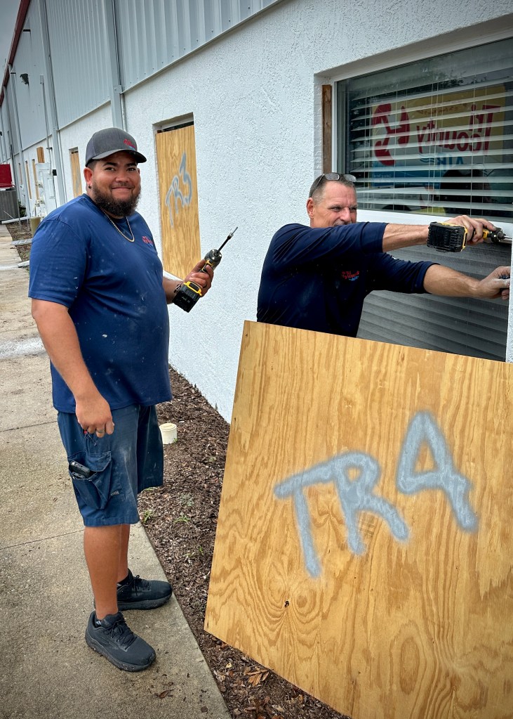 - Pulling together to prep the company building to minimize damage, and others showing up to prepare it for use again