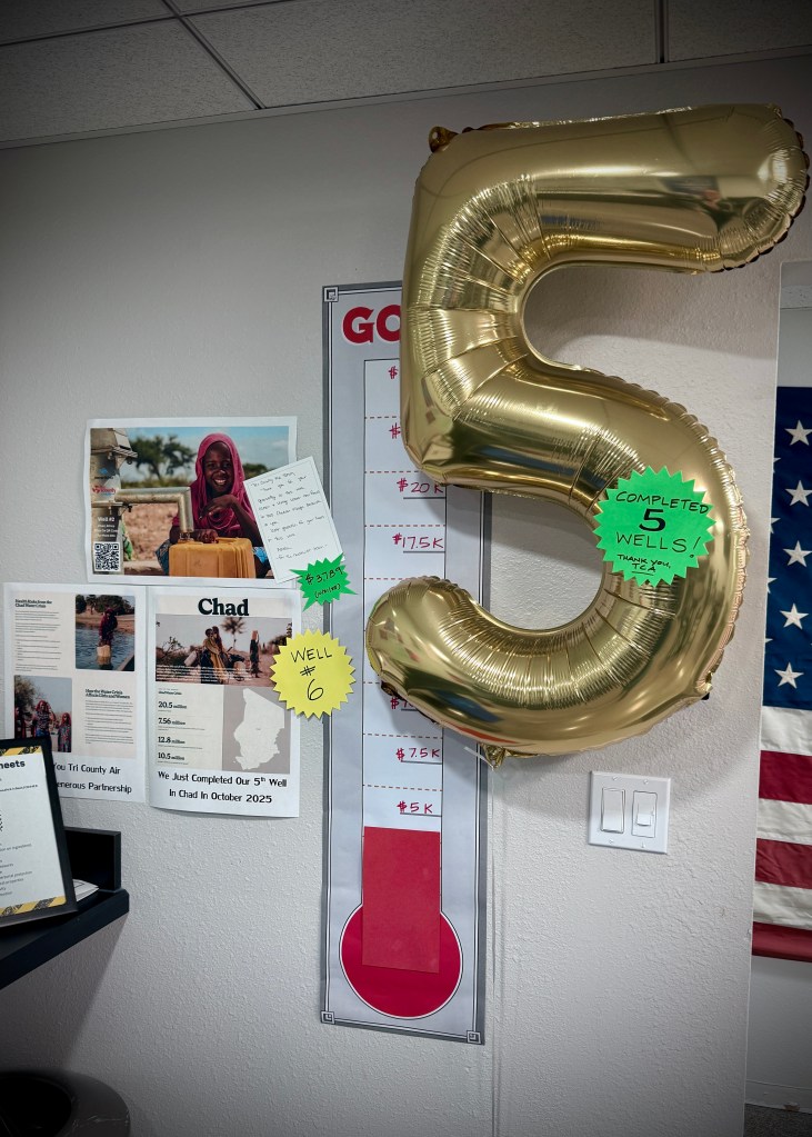 We finished funding our 5th well/tap stand in Chad, Africa, and are already well on our way towards our 6th one! We give proportionate to the number of installs, maintenance, and service calls we do each month, so every time we order a part, collect an invoice, schedule an appointment, sell a job, ride to another job site, or keep others moving forward with their role in serving our customers, we contribute to the goal. Each tap stand serves a remote community with fresh, running water in their village, instead of them having to send the girls or women on round trips carrying heavy containers of polluted water back to the village. Our contribution has made a difference for 5 villages with hundreds of people in each one. Thanks for all you do. To follow along, or contribute more, go to the link at neverthirst.